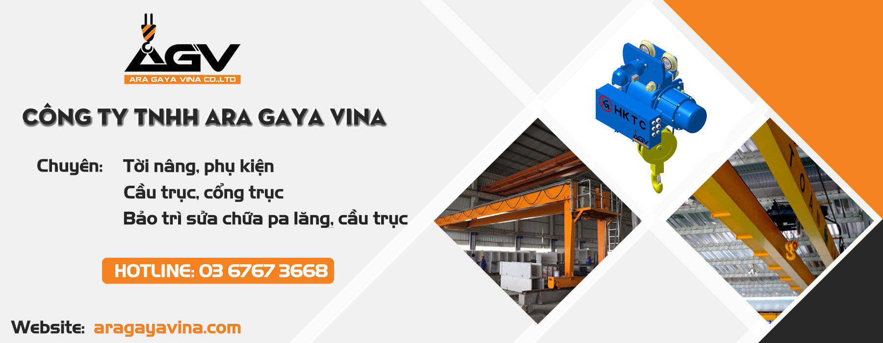 CÔNG TY TNHH ARA GAYA VINA chuyên về thiết kế, sản xuất, lắp đặt, bảo trì sửa chữa, thay thế các thiết bị nâng hạ trọn bộ. Nhập khẩu và phân phối các loại pa lăng chính hãng đồng thời cung cấp tất cả các phụ kiện liên quan đến thiết bị nâng hạ như: Hệ cấp điện cho pa lăng, hệ cấp điện cầu trục, động cơ di chuyển cầu trục, tay bấm điều khiển từ xa…v.v. Các sản phẩm được công ty bảo hành 1 năm và hỗ trợ sửa chữa sự cố 24/24. Với dây chuyền sản xuất hiện đại tiên tiến, đội ngũ kỹ thuật tận tâm với chuyên môn cao, yêu nghề và lực lượng công nhân lành nghề, lâu năm kinh nghiệm đảm bảo sản xuất ra sản phẩm chất lượng cao, đáp ứng yêu cầu khắt khe của khách hàng. Quy trình sản xuất của chúng tôi đáp ứng đầy đủ các yêu cầu về an toàn lao động, an toàn thiết bị nâng và các quy định khác của pháp luật. Ngoài ra, các nguyên tắc cốt lõi của nhà máy chúng tôi là: An toàn – Chất lượng – Uy tín